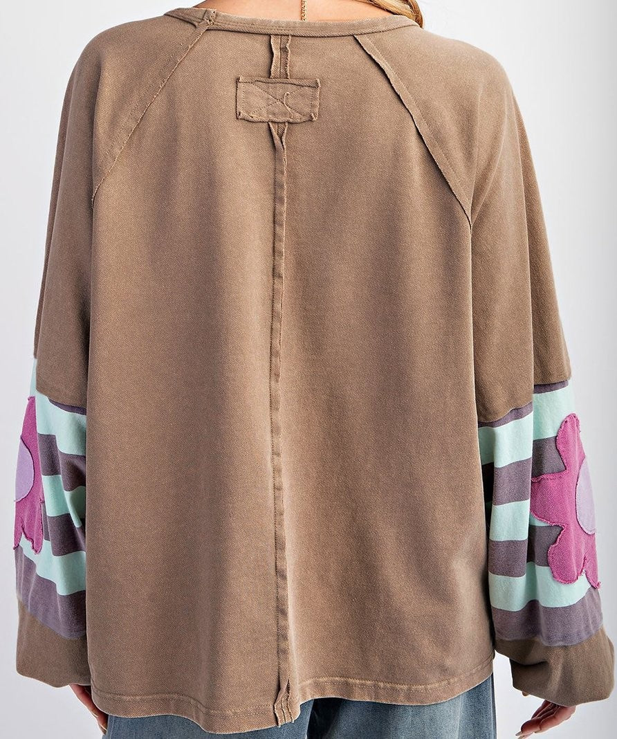 This oversize pullover is stylish with a bit vintage flair with a mineral wash.